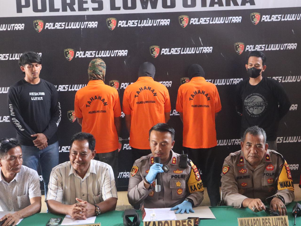 Ketiga tersangka sudah diamakan di Mapolres Luwu Utara.