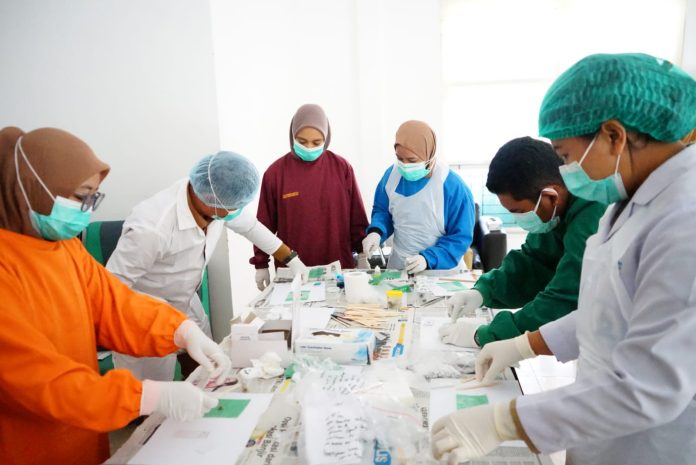 Hadir Kepala Dinas Kesehatan, dokter Adnan, narasumber Prof Sitti Wahyuni beserta tim dari Parasitologi Fakultas Kedokteran Universitas Hasanuddin (Unhas), laboran RSUD I La Galigo, serta laboran dan bidan koordinator dari Puskesmas se- Luwu Timur.