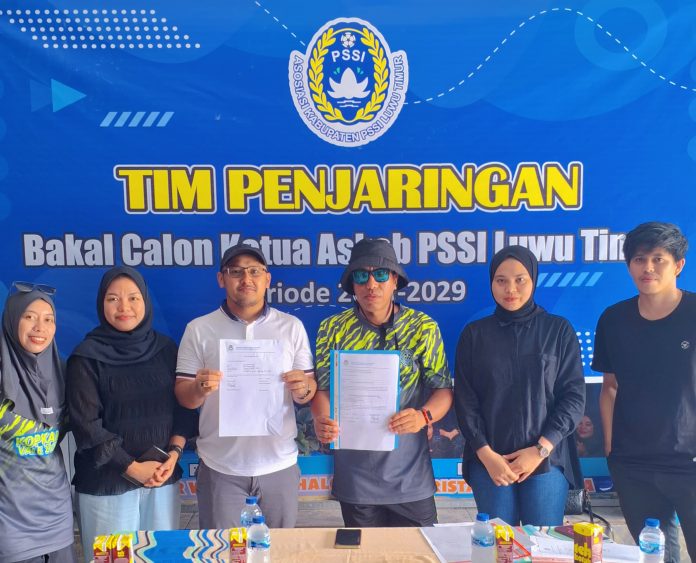 SAOKAREBA – Pengusaha Asri Rachman Agri mengambil formulir untuk mendaftar sebagai calon ketua Askab PSSI Luwu Timur, Jumat (16/5/2025) siang.