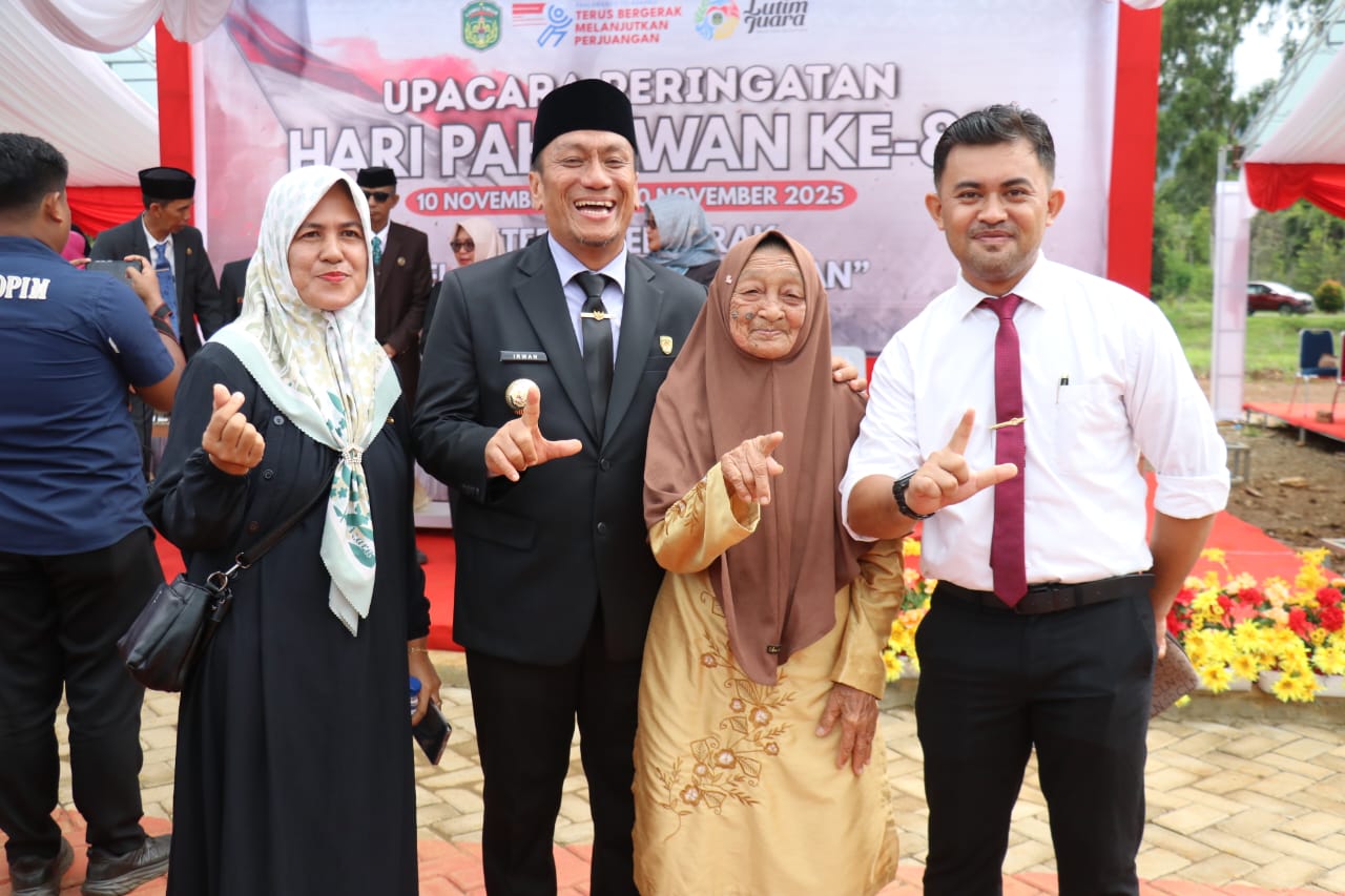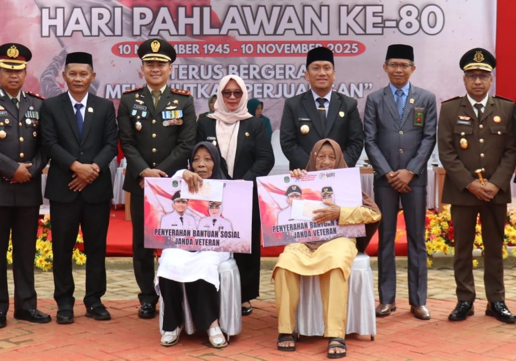 SAOKAREBA – Bupati dan Wakil Bupati Luwu Timur Irwan Bachri Syam-Puspawati Husler, menyerahkan santunan kepada janda veteran di Hari Pahlawan, Senin 10 November 2025.