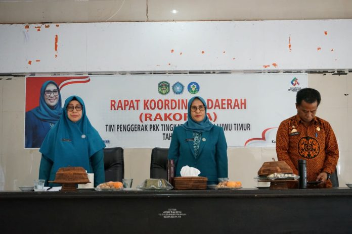 Staf Ahli TP PKK, Haeril Al-Fajri, dan perwakilan TP PKK se-Kabupaten Luwu Timur sebagai peserta Rakorda tahun 2023.