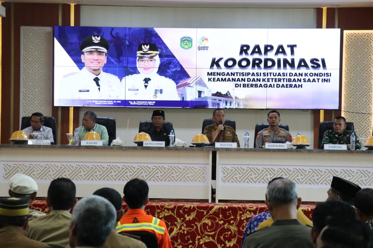Rapat dipimpin Bupati Luwu Timur, Irwan Bachri Syam, didampingi Kapolres Luwu Timur, AKBP Ario Putranto TM, Pabung Lutim Mayor Arm Syafaruddin, Ketua DPRD Lutim, Ober Datte, Kepala Kejaksaan Negeri (Kajari) Lutim, Budi Nugraha, Ketua Pengadilan Agama Malili, Rajiman, serta Ketua Pengadilan Negeri, Uwaisqarni.