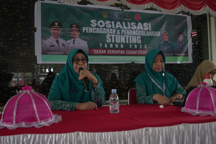 “Tim Pendamping Keluarga (TPK) yang terdiri dari Bidan, Kader TP PKK dan Kader KB Desa yang melaksanakan pendampingan melalui serangkaian kegiatan yang meliputi penyuluhan, fasilitasi pelayanan rujukan dan fasilitasi bantuan sosial serta surveilans/pengawasan/pengamatan untuk mendekteksi dini faktor risiko stunting jadi diharapkan para TPK dapat melaksanakan tugas dengan baik dan terus mejaga kolaborasi bersama untuk mencapai target yang kita inginkan.” Tandas Hj. Masrah.
