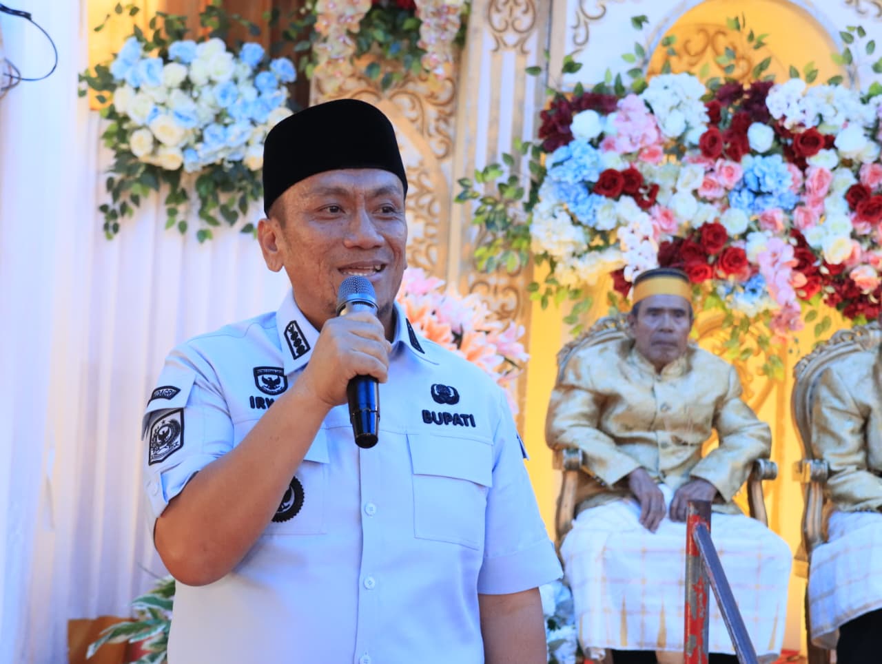 Di sela kesibukannya, Bupati Irwan juga menghadiri undangan nikah warganya di Dusun T Mincarae, Desa Loeha.