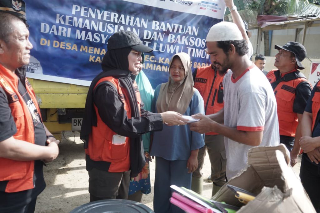 Anggota DPRD Sulsel, sekaligus Ketua TP PKK Luwu Timur, Ani Nurbani ikut menyalurkan bantuan di lokasi bencana.