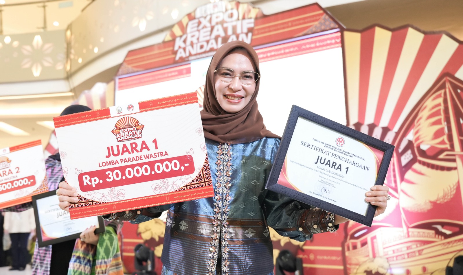SAOKAREBA – Ketua Dekranasda Luwu Timur, dokter Ani Nurbani Irwan kembali mengharumkan nama daerah dengan meraih Juara 1 Parade Wastra pada ajang Expo Kreatif Andalan 2025 yang digelar di Trans Studio Mall Makassar, Minggu (23/11/2025).
