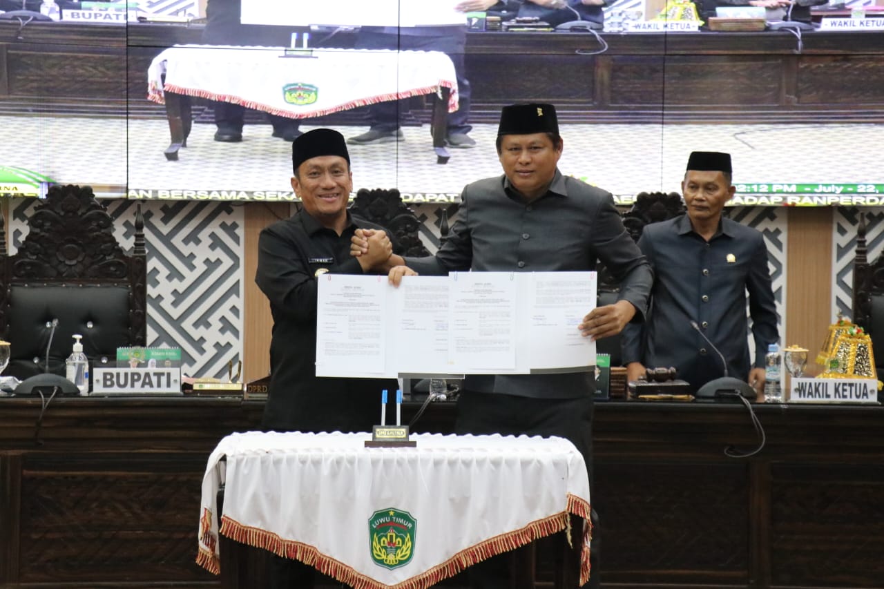 Acara ditutup dengan penandatanganan persetujuan bersama antara Bupati Luwu Timur dan Ketua DPRD terhadap Ranperda Pertanggungjawaban Pelaksanaan APBD TA 2024.
