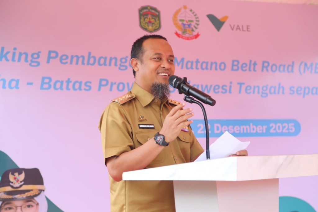 SAOKAREBA – Groundbreaking pembangunan Matano Belt Road (MBR) ruas Ussu–Nuha–Batas Provinsi Sulawesi Tengah sepanjang 35 kilometer, digelar di Desa Ussu, Kecamatan Malili, Senin (22/12/2025).