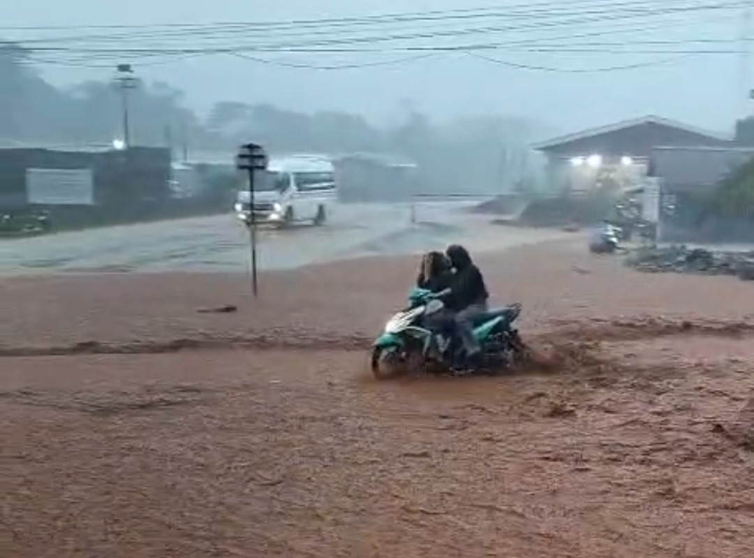 Jalan Nasional Depan Komplek PT PUL Tergenang Air Coklat Pekat