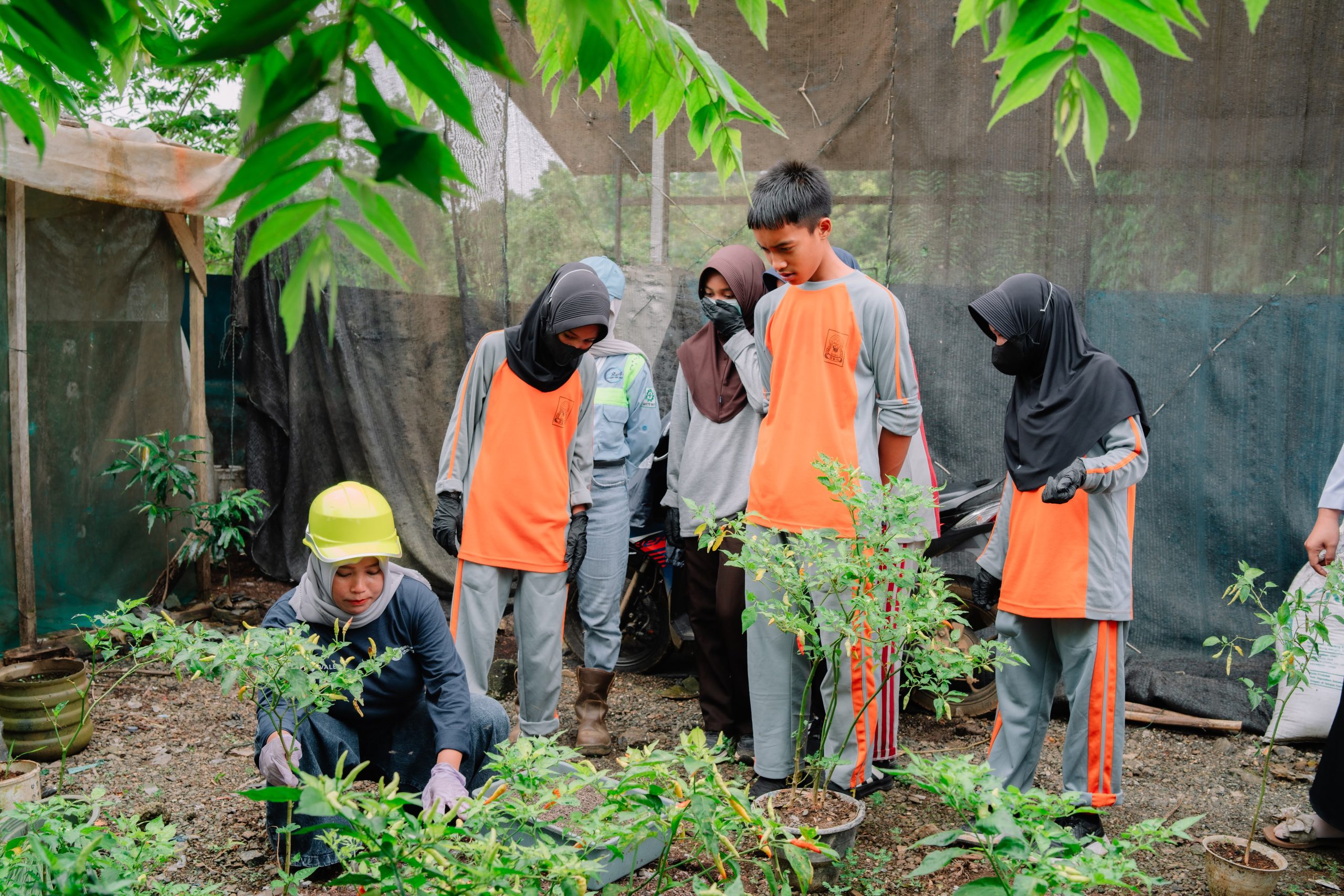 Salah satu bagian yang paling menarik perhatian siswa adalah demonstrasi budidaya maggot, sebuah metode pengolahan sampah organik menggunakan larva Black Soldier Fly (BSF). Metode ini tidak hanya efektif mempercepat penguraian sampah organik, tetapi juga menghasilkan maggot yang dapat dimanfaatkan sebagai pakan ternak dan bernilai ekonomi tinggi.