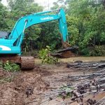 SAOKAREBA – Satpol PP Luwu Timur membantu memindahkan lapak pedagang dekat lokasi konser Kotak di Desa Puncak Indah, Kecamatan Malili, Kamis (4/5/2023).